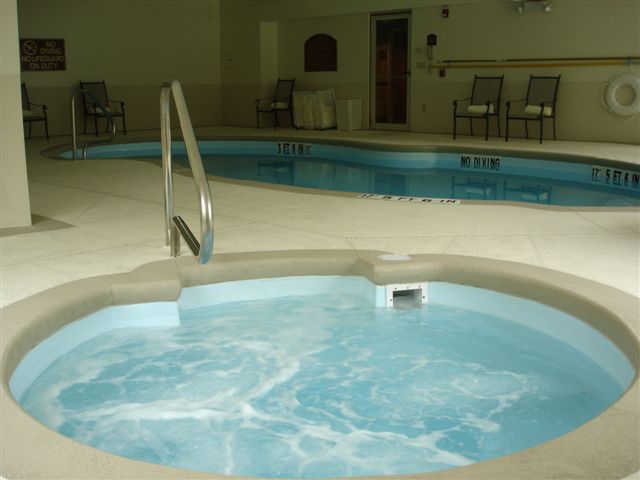 This commercial project installation and photo compliments of Pioneer Valley Fiberglass Pools in Massachusetts. Venetian Pool with Sarasota Spa.